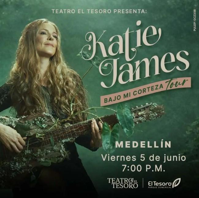 5 de junio, 7:00 p.m.Katie James regresa al Teatro El Tesoro con un emotivo concierto en el que presentará su nuevo álbum: Bajo mi corteza. Con su característico estilo personal y auténtico, la artista sigue explorando ritmos y sonoridades latinoamericanas, pero esta vez, aventurándose un poco más allá de lo andino al incluir sonoridades del bolero, la música llanera, la cumbia y hasta el vallenato!